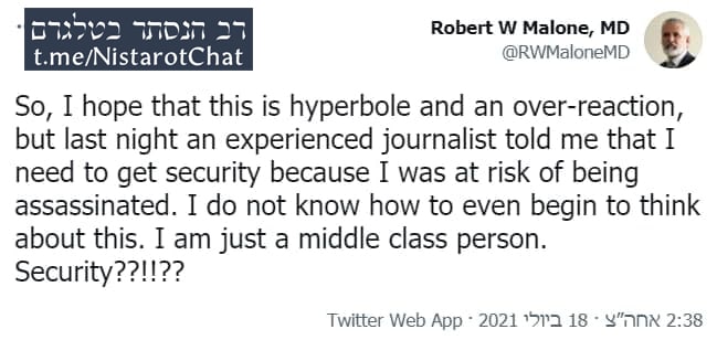 ד"ר רוברט מאלון המדען שהמציא את חיסון ה-mRNA: ירצחו אותי אם אספר את האמת, אני חושש לחיי@NistarotChat | רב הנסתר