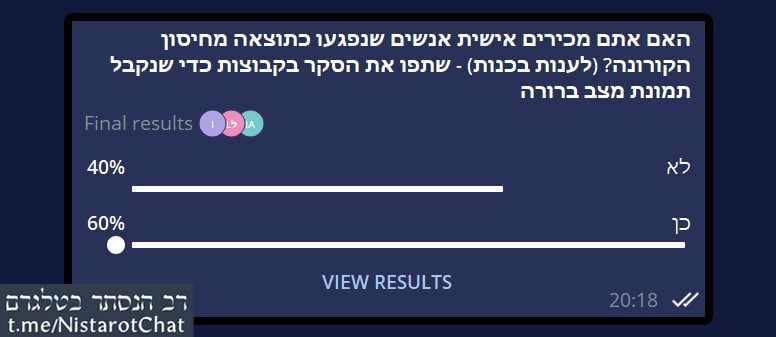 נתונים מזעזעים: 60% מהמשתתפים בסקר מעידים שהם מכירים אישית אנשים שנפגעו כתוצאה מחיסון הקורונה@NistarotChat | רב הנסתר בטלגרםבסקר שפורסם בתאריך